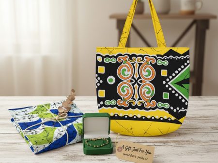 🧵🌺 Sri Lankan Batik Gift Set – Tote Bag, Unstitched Cotton & Handmade Bracelet